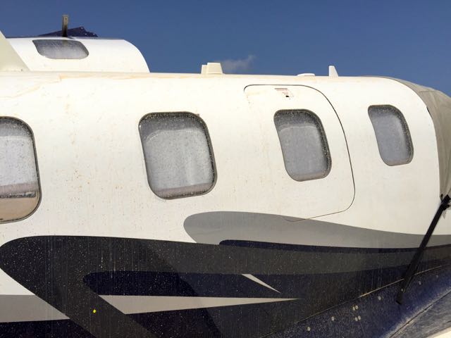 Captains Tom and Diann are dressed and ready for todays flight.All pilots are dressed to arrive in countries where general aviation is not common nor respected. We need to look professional.You may see the white line was a zig-zag route initially give to us. The “magenta” line shows how we were actually given direct clearance.Along the way we needed to divert around some significant build ups with electrical activity….a little rain might have cleaned airplane, but it was more than we were willing to deal with!