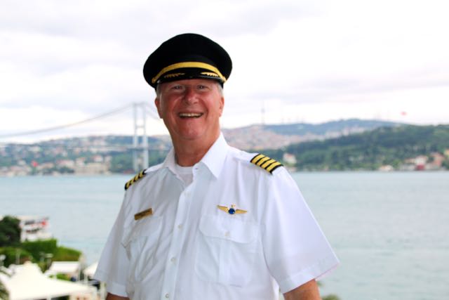 No, not mid-west USA…but, Turkey fields!Looking left out our balcony the pool, the gardens and one of two suspension bridges over the Bosporus.Looking right see the Bosporus opening to the Sea of Marmara and the magnificent Caravan Palace, which dates back to the end of the 16th century. This was home to the last Ottoman Sultan.Captain, Tom after the day’s flight.First Officer, Diann after the day’s flight.At Sultan Ahmat Square, next to the “Million”, is signage which notes distance to many locations. The old stone pillar, the Million”, is all that remains of a Byzantine triumphal arch from which road distances to all corners of the empire were once measured.