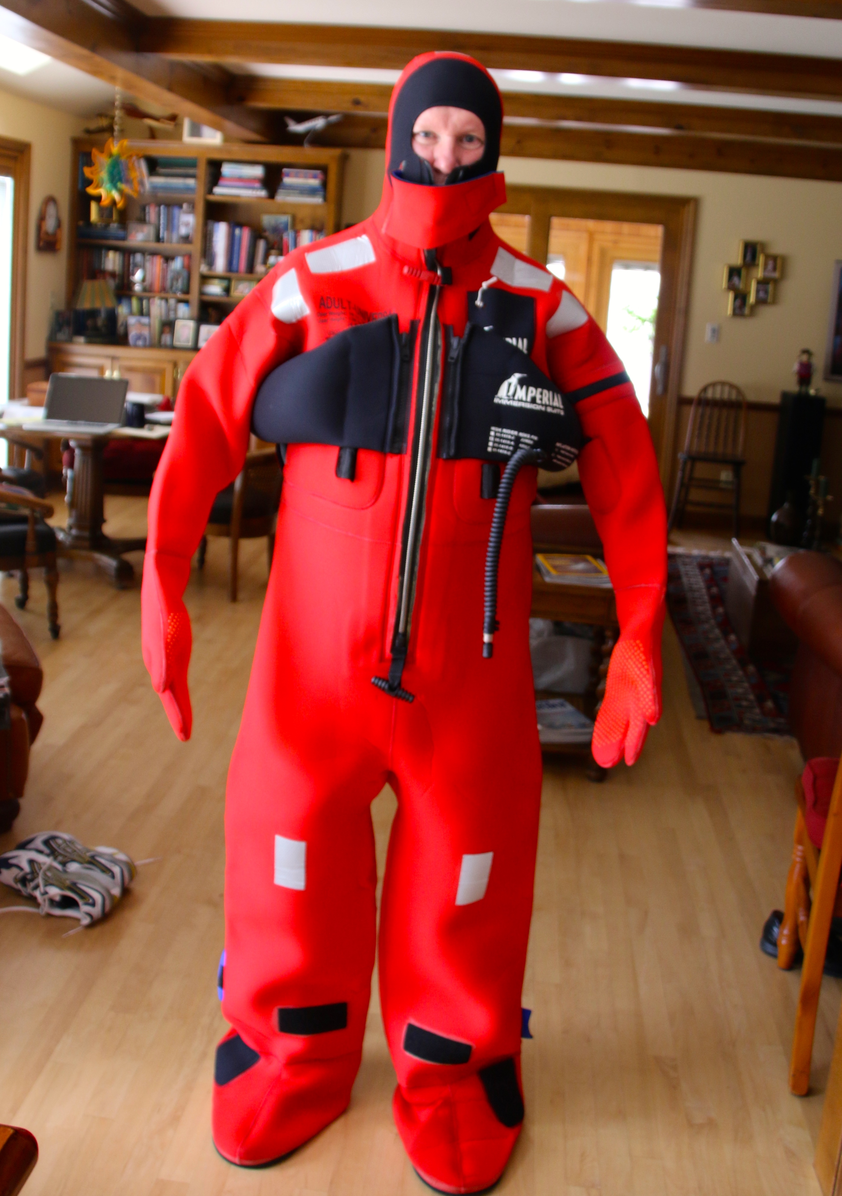 We have cases of bottled water, snacks (to substitute for food we may not wish to eat); our emergency survival suits and life raft (required for over water crossing); and of course wardrobes for our 73-day adventure! All packed and ready to go!