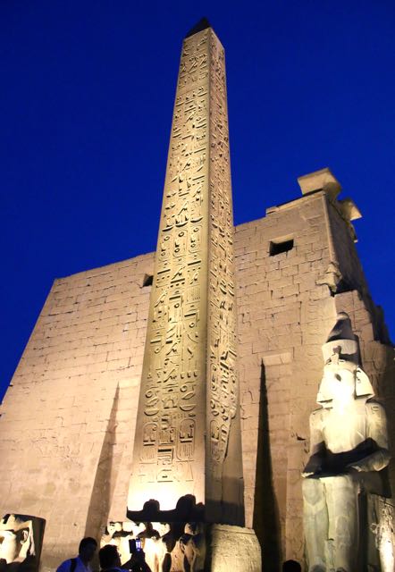 The first evening we experienced the Luxor Temple with its rows of multiple sphynx, the columns, the obelisk (the matching obelisk is at Place de la Concorde in Paris) and statues to name a few. This ancient Egyptian construction is a continuing archeological reconstruction project. Luxor is a depressed area after the failure of the Arab Spring, 2011. Agriculture and tourism are their main source of economy. Currently, tourism is only 10-15% from what it was pre-2011. Most cruise boats are out of commission and slowly deteriorating. It was eye opening to see the poverty of these people and we left with a inner saddness for them. Whatever help we might have contributed to their economy–it will take them many decades to recover. When late evening temperatures drop to 90 there were many people out in creative ways–many small motor cycles (we witnessed a few single motor bikes that carried a family of 4-5)!!