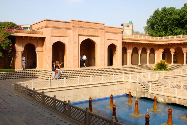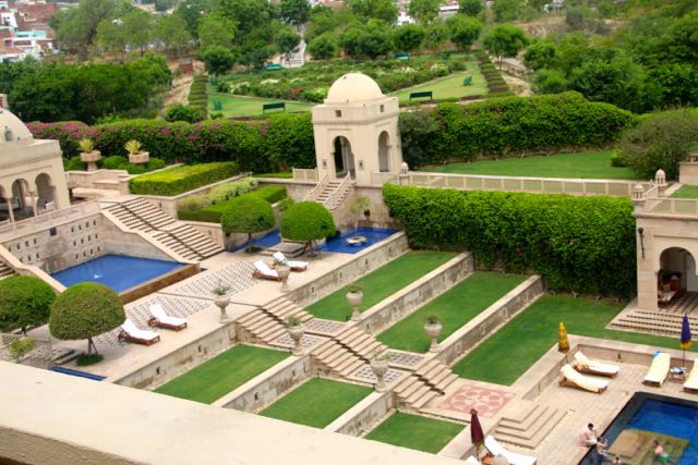 Memories of last night trip through the streets of Agra (the happy partying in the streets amide the chaotic and difficult movement of vehicles) faded slightly while we rested from our hectic aviation adventure the day before. Relaxing in the beautiful hotel, Oberoi Amarvilas, with every person passing onto us a peaceful sense of being. The grounds are exquisite: the pool’s delightful outdoor and shaded space, the poolside lunch was the perfect scenario while recovering from our long and late flying day. Topping it off we enjoyed our private view of the Taj Mahal right from our window!