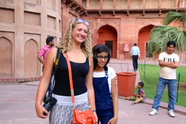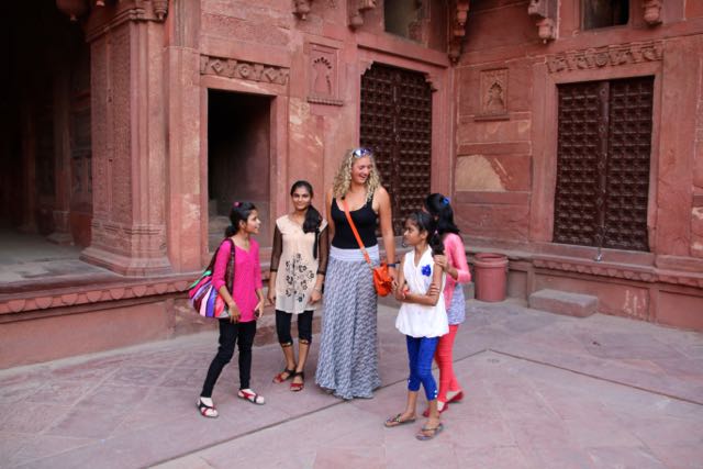 Hoping for less intensity of heat our directors gathered us at 4 pm to tour Fort Agra. This fort is 70% occupied by India military. It is so massive that we had an ample amount to appreciate the architural design and structure. It is constructed of bricks on the inner core with red sand stone on the outer and took five years to complete: 1565-1573. Positioned just by the River Jamuna Agra Fort is the most important of India, it is a brick port built by the Great Mughals who governed from here.