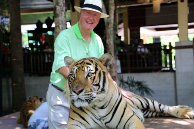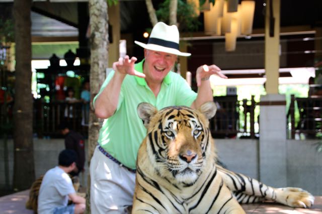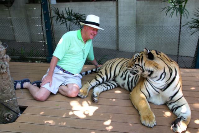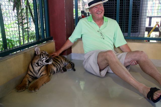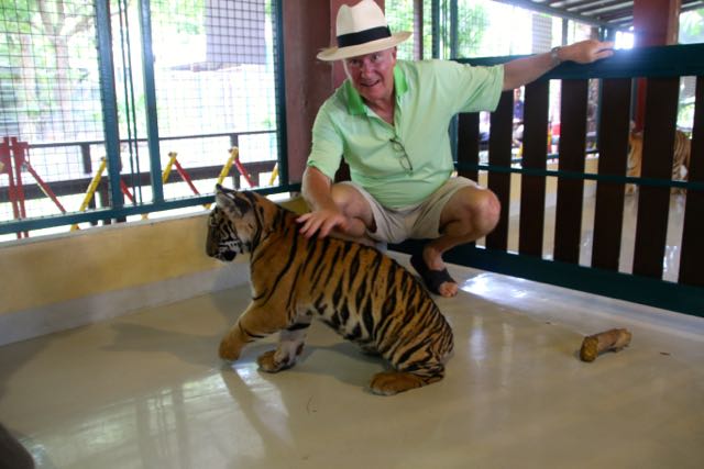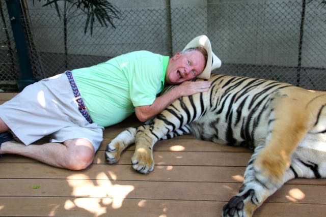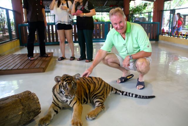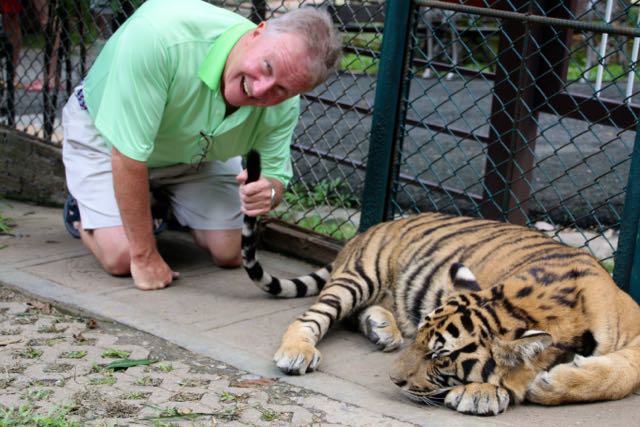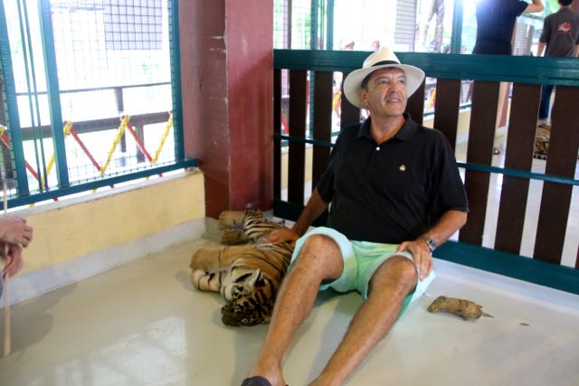 Day 38, June 17: Chiang Mai… the Tigers June 19, 2015June 19, 2015 baumanntbm Two goofy guys ready to visit the Tiger Camp! Our first “up close and personal” Tiger experience. Photos tell it all…. Share this: Click to share on X (Opens in new window) X Click to share on Facebook (Opens in new window) Facebook Like Loading... Related